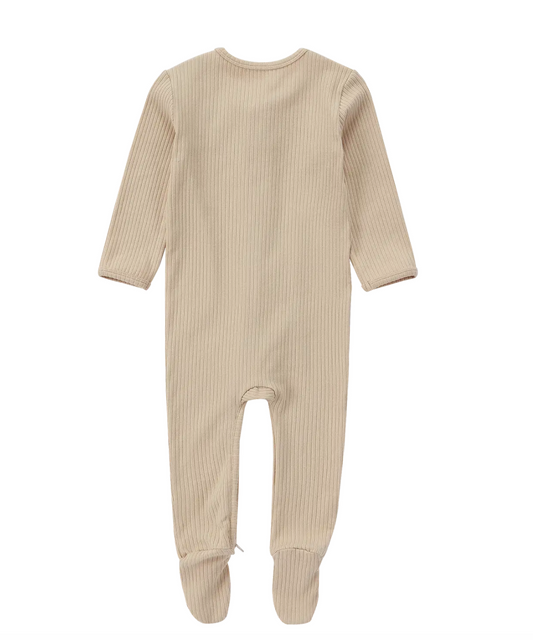 Organic Cotton Ribbed Zipper Footie Pajama | Beige