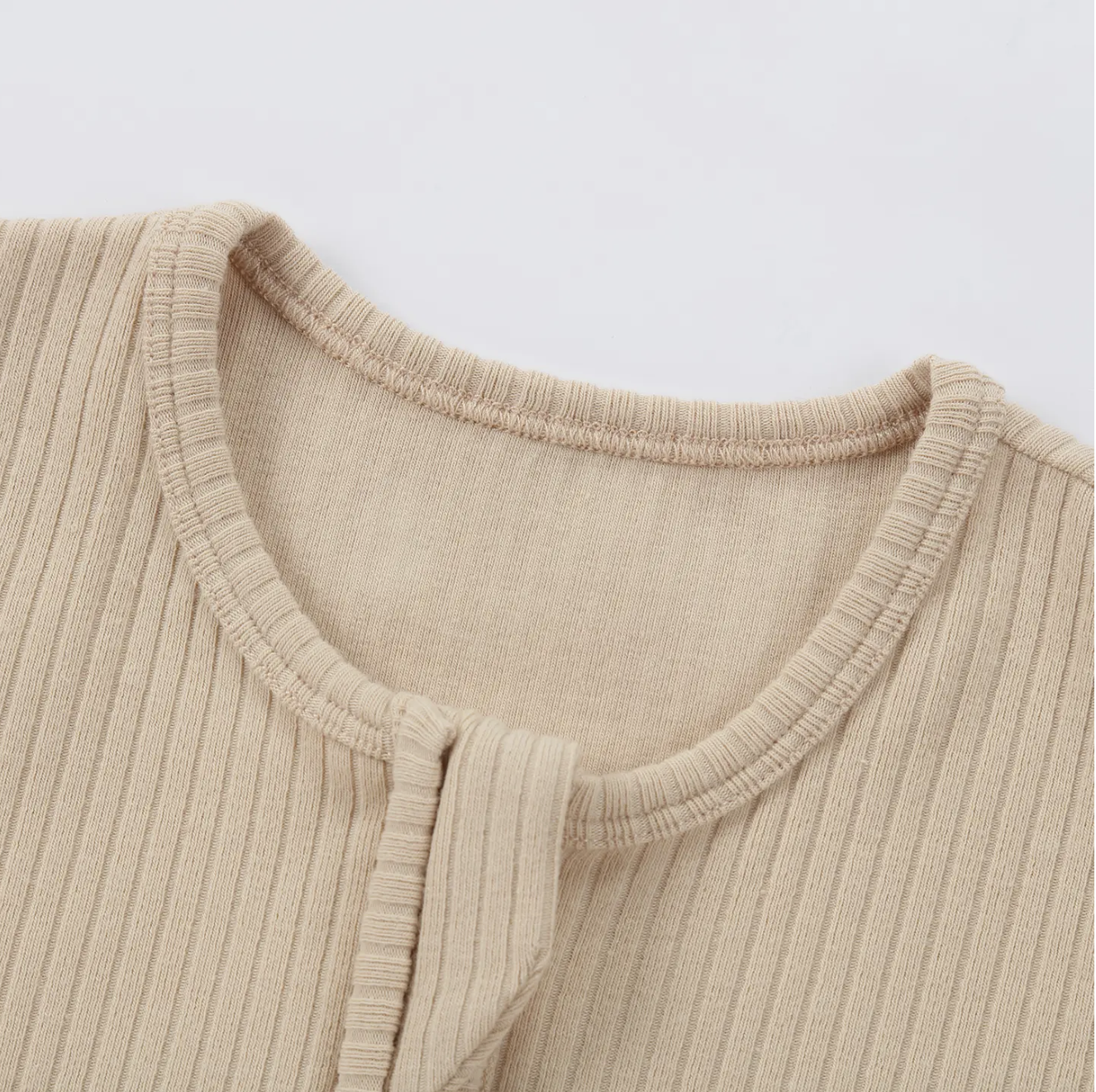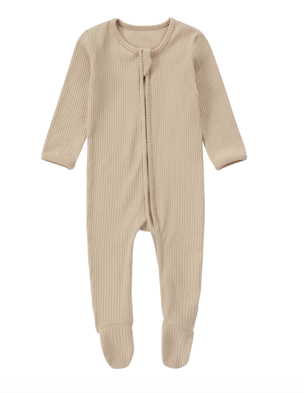 Organic Cotton Ribbed Zipper Footie Pajama | Beige