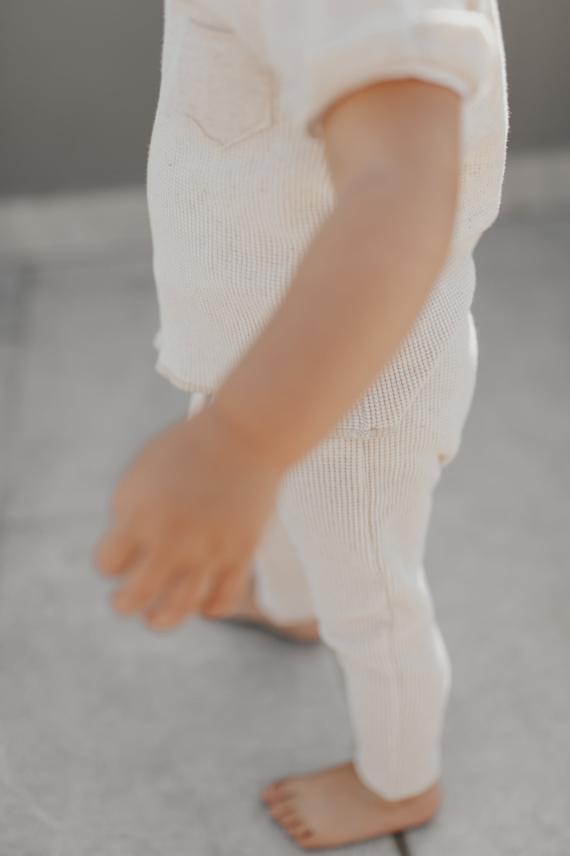 T-Shirt & Pants Set | Ivory Linen Waffle